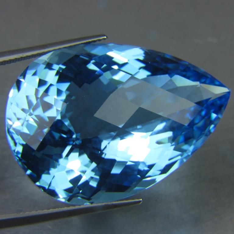 MAGNIFICENT 96.40CT HUGE NATURAL SWISS BLUE TOPAZ PEAR SHAPED CHECKERBOARD, Dimension 36.60 x 25.24 x 16.51, CLARITY FL