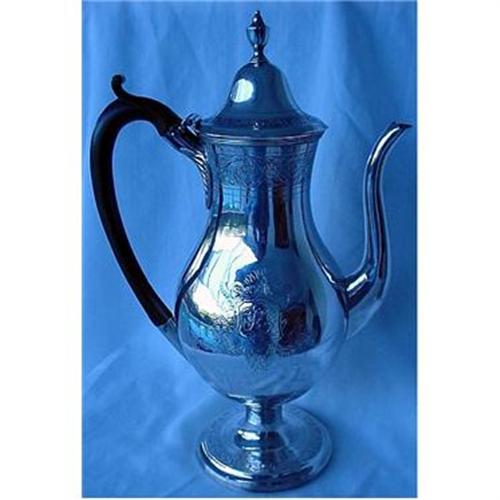 Magnificent sterling silver coffee pot made in Newcastle, England, in 1798. Maker is John Robertson. <P><P> Measures: 13" tall and weighs a whopping 1 lb 9 oz. <P><P> Classic shape for coffee pot of this period. Original wooden handle. Round base, lid and neck are chased with pretty scrolling foliate decoration. Very fine decoration around rims and edges. Trophy-shaped finial. Beautiful fluted leaf-shaped join of handle.<P> Both front and back have decorative cartouche surrounded by flowers and foliage. One side has a monogram (TEG) beautifully engraved on it, the other is empty. <P><P> Marks:The piece is fully hallmarked under the base as follows:date letter 'H'; King's Head facing right;Three castles; Leopards Head crowned; Lion Passant and maker J.R (looks like I.R, but that is how they wrote). The lid has Lion, King and Maker's marks. <P><P> Condition: excellent. All parts are in very good condition including hinges and joins. No restorations.<P><P> Please see my other wonderful items. <P><P>