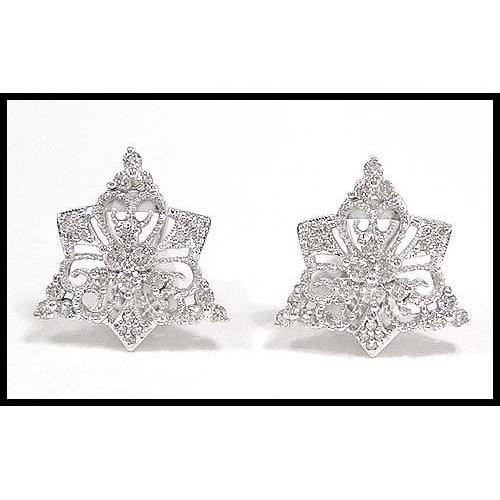This is a vintage design in 14K solid white gold that has been crafted by a modern master. He has set 54 brilliant diamonds that total at least .85 carats. High elegance at an amazing low price!! They are 18mm (23/32") long. Weight is 5.4 grams. French backs allow them to be worn with comfort and close to the ear. Tag price of $1,600.00 has been thrown away so that you can own them for much less than half of that.