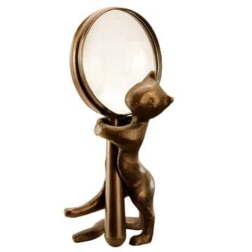 MAGNIFYING GLASS WITH CAT HOLDER - 6.5"H X 3"W X 3"D - CAST IRON & GLASS
