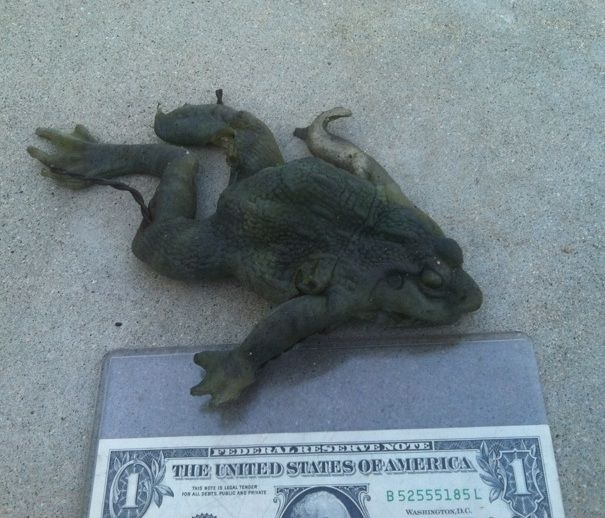 This is a screen used painted armatured hero Frog from Magnolia. It is flat and has a missing foot because it laid on the street and was run over by a car in the movie.