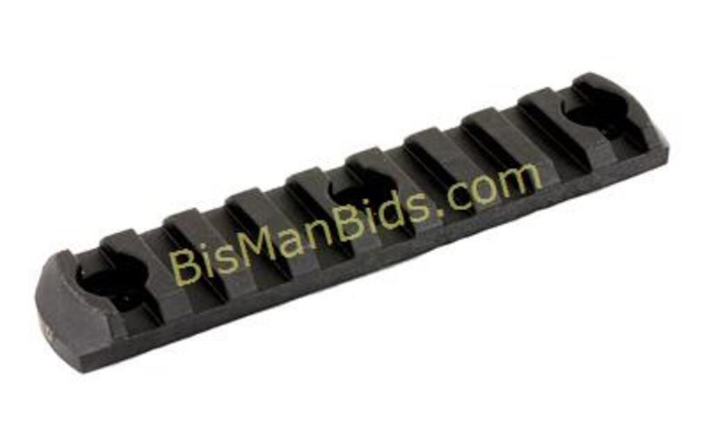 Designed for use with all M-LOK compatible Hand Guards and Forends, M-LOK Polymer Rail Sections provide a cost effective method of attaching various 1913 Picatinny spec rail-mounted accessories such as lights, vertical grips, etc. Injection molded from a proprietary reinforced composite for enhanced strength and durability while remaining lightweight, Rail Sections also feature beveled ends to reduce snagging and eliminate sharp corners and edges. All hardware necessary for attachment directly to M-LOK Slots on either aluminum or polymer hand guards and forends is included. 9 Slots, max overall length of 4.1 in. Made in U.S.A.