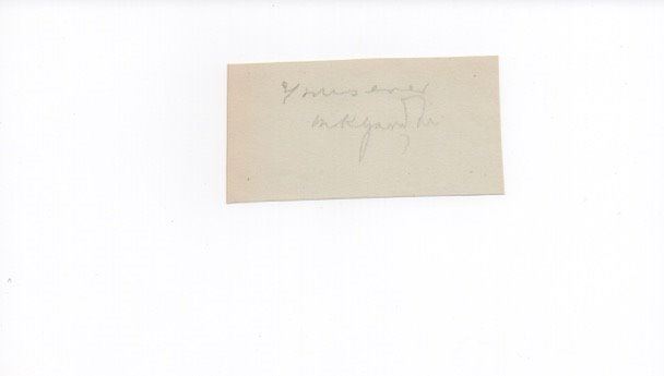 A Mahatama Gandhi signed cutting. Mohandas Karamchand Gandhi was assassinated in the garden of the former Birla House (now Gandhi Smriti) at 5:17 pm on 30 January 1948. Accompanied by his grandnieces, Gandhi was on his way to address a prayer meeting, when his assassin, Nathuram Godse, fired three bullets from a Beretta 9 mm pistol into his chest at point-blank range. Godse was a Hindu nationalist with links to the extremist Hindu Mahasabha, who held Gandhi guilty of favouring Pakistan and strongly opposed the doctrine of nonviolence. Godse and his co-conspirator were tried and executed in 1949