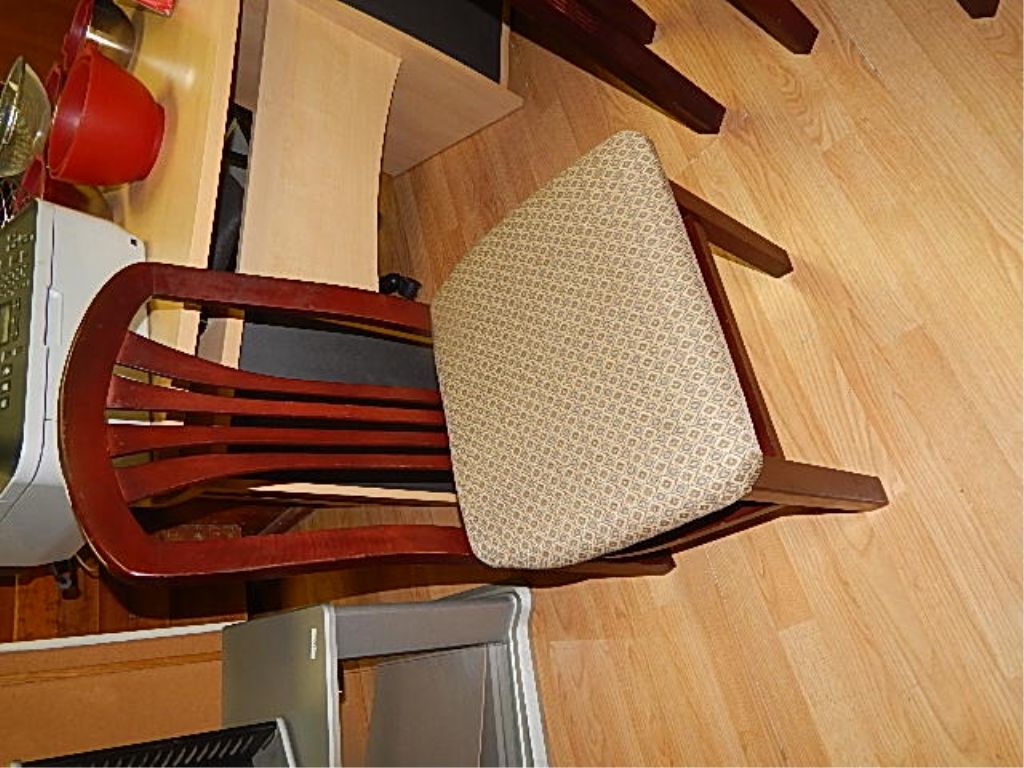 MAHOGANY AND CLOTH DINING CHAIR - BID X 6