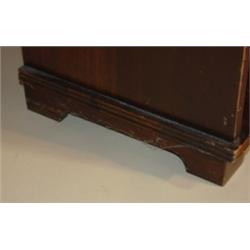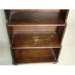 MAHOGANY BOOKSHELF. 4 shelves. Major surface scratching to shelves. 49" H, 23.5" W, 11.5" D