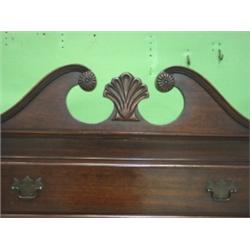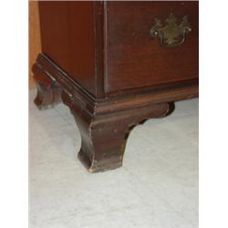 Mahogany chest on frame. 4 drawers over 3 drawers. Shell carved design on top & bracket feet. Minimum surface scratches are visible. Marked Cavalier on inside of top drawer. 74.5" H, 33.5" W, 15" D