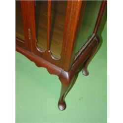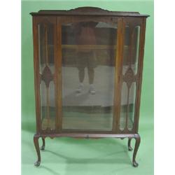 MAHOGANY QUEEN ANNE STYLE CHINA CLOSET. Some loss to veneer at several areas. Glass sides. 2 wooden shelves. 61” H, 41.5” W, 14.5” D