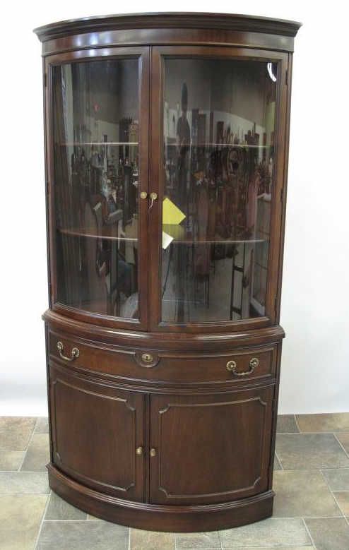 -with upper glazed doors, frieze drawer and lower cabinet base.