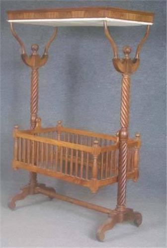 EARLY 19TH CENTURY MAHOGANY CRADLE with canopy top height: 76" mattress: 42"x 25"