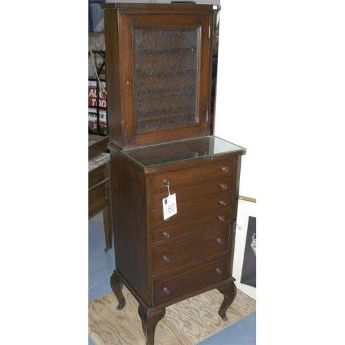 MAHOGANY DENTAL CABINET, six graduated drawers with frosted cabinet doors, circa 1910, CONDITION: excellent original with some nicks and scratches