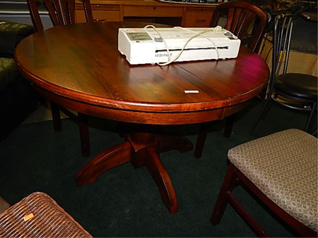 MAHOGANY DINING TABLE WITH SCISSOR LEAF BUILT IN