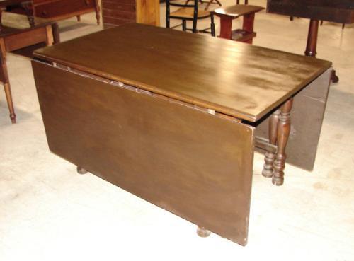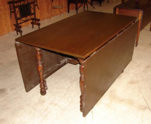 LARGE GATELEG DROP-LEAF MAHOGANY DINING TABLE. Two board top with turned legs. 29.5” H, 54” L, 32” W. Each leaf: 24” W.