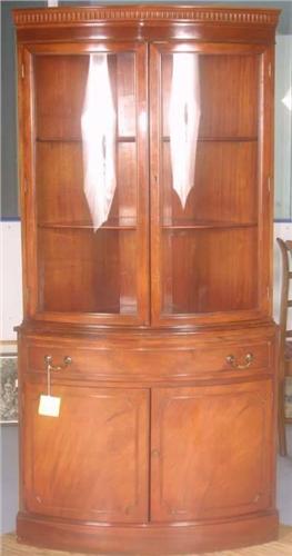 MAHOGANY DOUBLE DOOR CORNER CHINA CABINET, circa