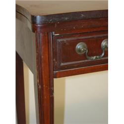 Mahogany flip-top card table with drawer. Surface scratching is visible to top. Good overall condition. 32" H, 34" W, 17.75" D