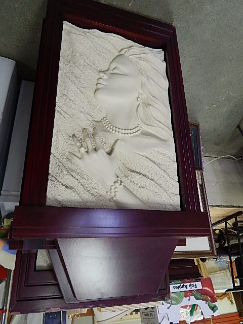 MAHOGANY FRAMED ART DESIGN WALL HANGING - LADY WITH 1 BRACLET ETC