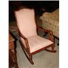 MAHOGANY SWAN NECK ROCKING CHAIR. Swan carved arms. Upholstered back & seat. 40” H to top of back.