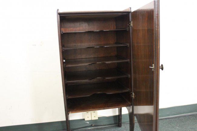 MAHOGANY SHEET MUSIC CABINET WITH FRAMED TOP AND SIX SHELVES - 39 X 17.5 X 13
