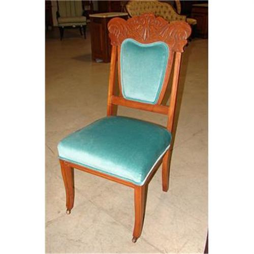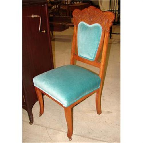 PAIR OF EASTLAKE MAHOGANY SIDE CHAIRS. Upholstered seats and backs. 39” H to top of back.
