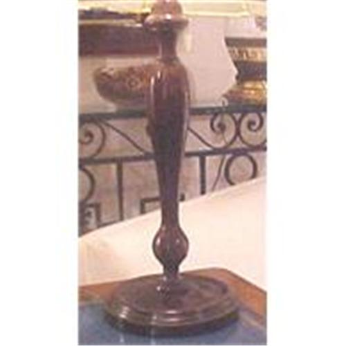 Simple and elegant turned wood mahogany lamp. Works in almost any setting.