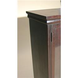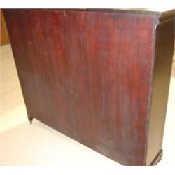 Mahogany three door bookcase. Has three glass doors. Some light surface scratching visibible on top and sides. 55" H, 64" W, 13" D.