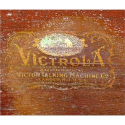 Mahogany Victor Victrola. Has 4 doors on bottom for storage. Has original crank. Marked on top underside of lid "Victrola Victor Talking Machine Co." Serial # VV3009553. 36" H, 37.25" W, 22.25" D