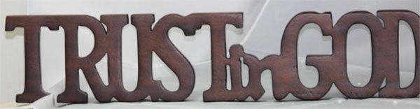 MAHOGANY WOOD LETTERS **|**|** MAHOGANY (TRUSTINGOD) WOOD LETTERS; SIZE W 18IN; L .5IN; H 4IN; COLOR DARK BROWN ; MSRP: $150