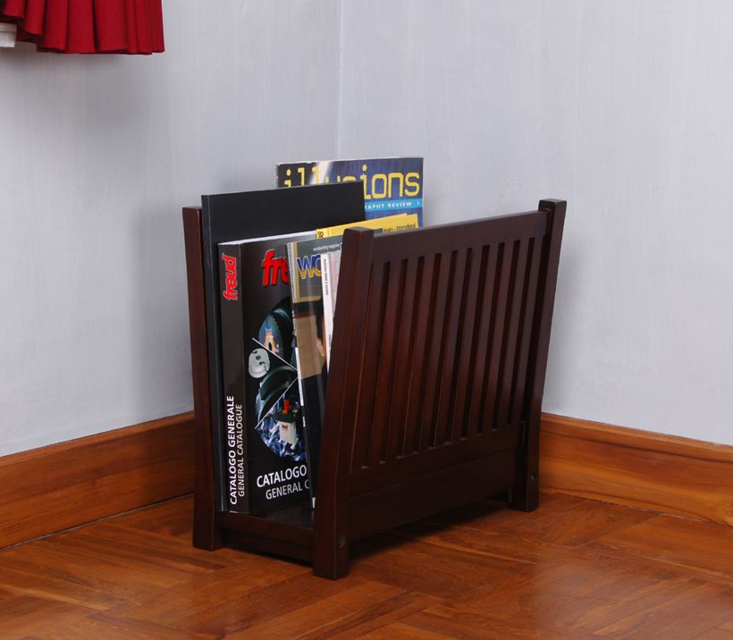 MAHOGANY WOOD MAGAZINE RACK **|**|** Mahogany wood magazine rack; N.W 7.3 LBS; G.W 9.02LBS; MEASURMENTS 15.75W X 10D X15H IN ; MSRP: $200