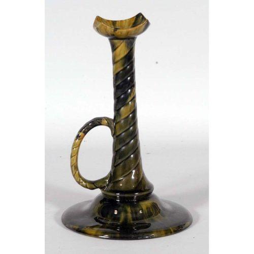 MAJOLICA GLAZE ART POTTERY CANDLESTICK LAMP, 12" high, CONDITION REPORT: excellent, PACKING AND SHIPPING: Fairfield Auction will provide packing and shipping (excluding insurance) within the Continental U.S. for $30. Buyer is welcome to use any other service or pick-up at the gallery.