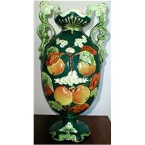 <tr><td>Title:MAJOLICA Urn VASE Nouveau FRUIT Large ANTIQUE</td></tr>
