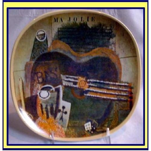 There were only 3 sets made of these plates in 1973. Measures 8 3/4inches accross. This plate depicts an abstract, cubist still life with dice, guitar, card and printed words forming an integral part of the painting. Plate has all the information about the original painting written on the back, is dated 1973 and signed H118. Condition is MINT with no scratches/cracks/chips of any sort. The series was abandoned when the rights to continue by the artist's heirs was denied. There were 6 plates in the series - this is one of 5 from a private collection. Enquire about the others.