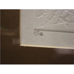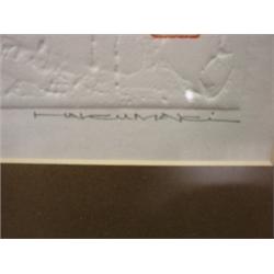 Maki, Haku "Poem 68-42" woodblock print. Numbered 27/43 in lower left. Signed in lower right. Maki's biography is attached to reverse. 15" x 27" framed.