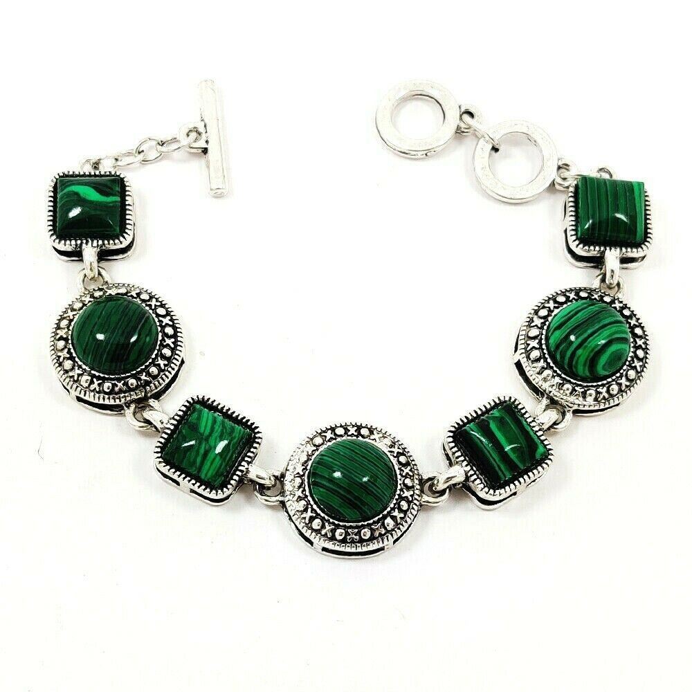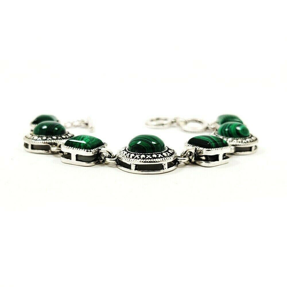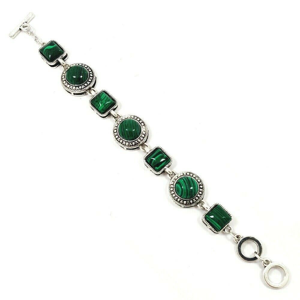 MALACHITE GEMSTONE SILVER PLATED BRACELET JEWELRY , Gemstone : Malachite , Gemstone Shape : Square/Round , Gemstone color : Green , Base Metal : White Brass , Metal Purity : Silver Plated , Bracelet Size : 8 Inches (With Adjustable Links) , Bracelet Weight Weight : 26.300 Gram , Product Code : SGJBRA1010.