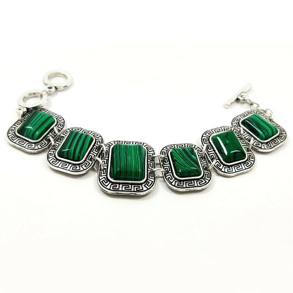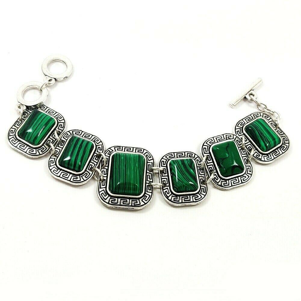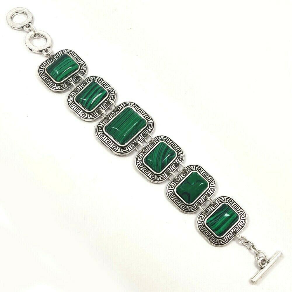 MALACHITE GEMSTONE SILVER PLATED BRACELET JEWELRY , Gemstone : Malachite , Gemstone Shape : Octagon , Gemstone Size : 10x14mm Gemstone color : Green , Base Metal : White Brass , Metal Purity : Silver Plated , Bracelet Size : 8 Inches (With Adjustable Links) , Bracelet Weight Weight : 21.70 Gram , Product Code : SGJBRA1016.