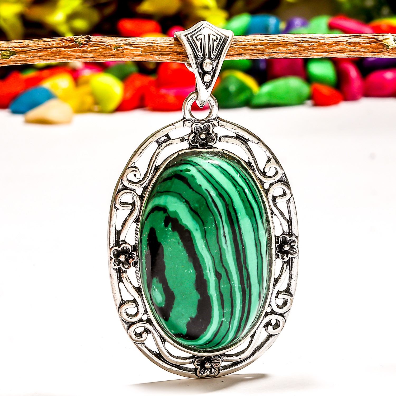 MALACHITE  GEMSTONE SILVER PLATED PENDANT JEWELRY 2.5" WITH CHAIN , Jewelry Type : Pendant , Gemstone : Malachite , Gemstone Size : 20x32mm , Gemstone Shape : Oval , Gemstone Color : Green , Metal : White Brass , Metal Purity : Silver Plated , Pendant Size : 2.5 Inches , Pendant Weight : 21.40 Grams , Quantity : 1 Piece Pendant With Chain , Product Code : SGJMXPDT1011