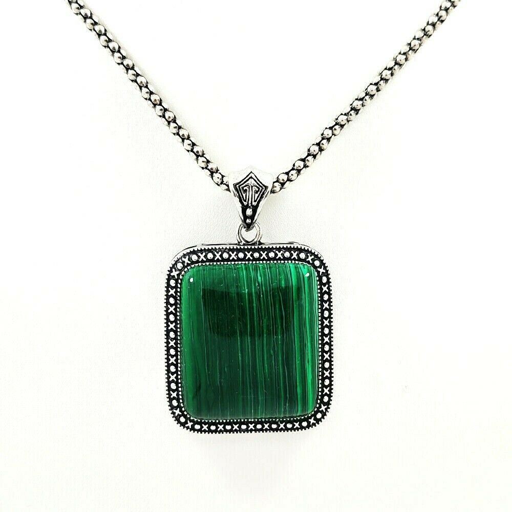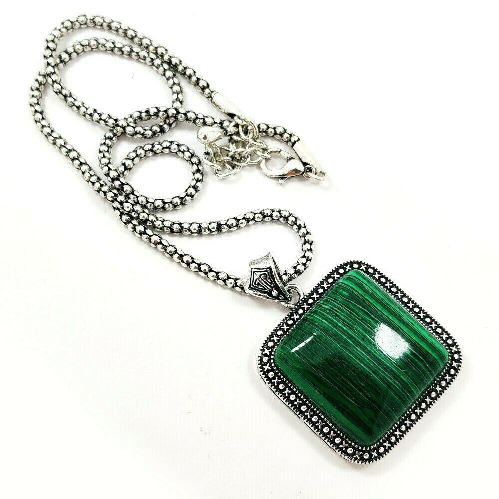 MALACHITE GEMSTONE SILVER PLATED PENDANT WITH CHAIN , Gemstone : Malachite , Gemstone Shape : Cushion , Gemstone Size : 30x30mm Gemstone color : Green , Base Metal : White Brass , Metal Purity : Silver Plated , Pendant Size : 2 Inches , Pendant Weight : 30.600 Gram , Package include : 1 Piece Pendant with Chain , Product Code : SGJPDT1042.