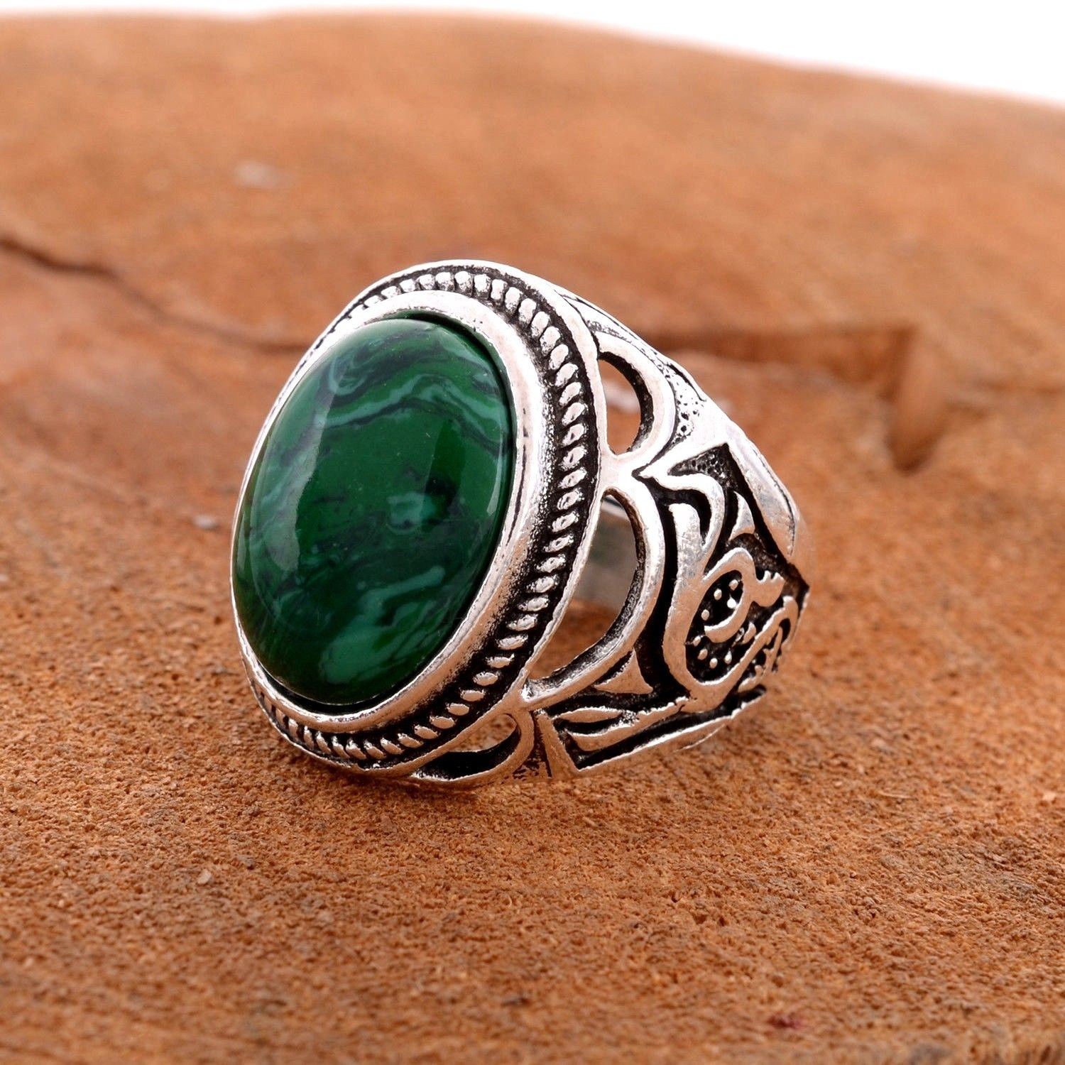 MALACHITE GEMSTONE SILVER PLATED RING SIZE 8 , GEMSTONE - MALACHITE , GEMSTONE COLOR - GREEN , STONE SHAPE - OVAL , MAIN STONE SIZE - 18X13 MM , QUANTITY - 1 PIECE RING , WEIGHT - 9.600 GRAMS