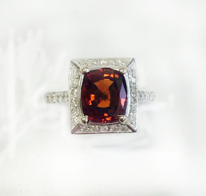 MALAYA GARNET 3.20CT, 14K W/G RING 7.04GRAM / DIAMOND 0.98CT