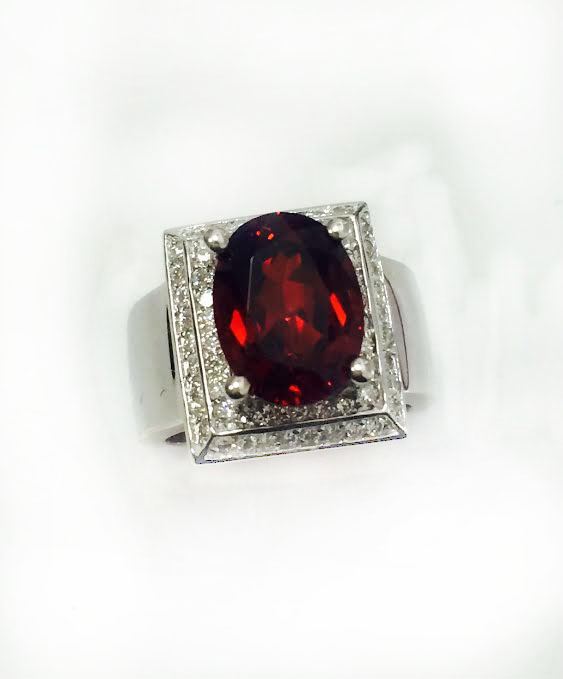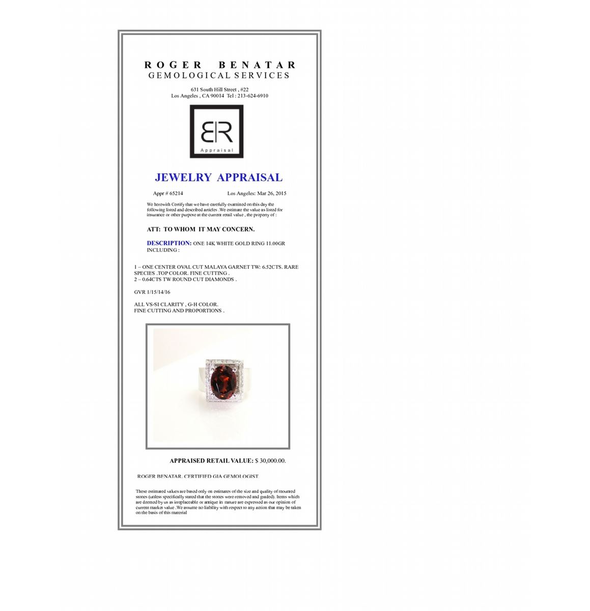 MALAYA GARNET OVAL 6.52CT, 14K W/G RING 11.00GRAM / DIAMOND RD 0.64CT