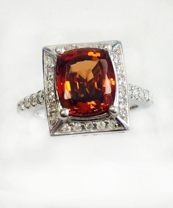 MALAYA Garnet 3.79CT, 14K W/G RING 6.69GRAM / DIAMOND RD 0.71CT