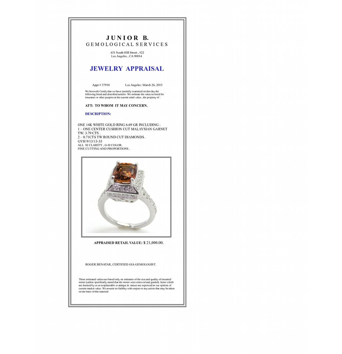 MALAYA Garnet 3.79CT, 14K W/G RING 6.69GRAM / DIAMOND RD 0.71CT