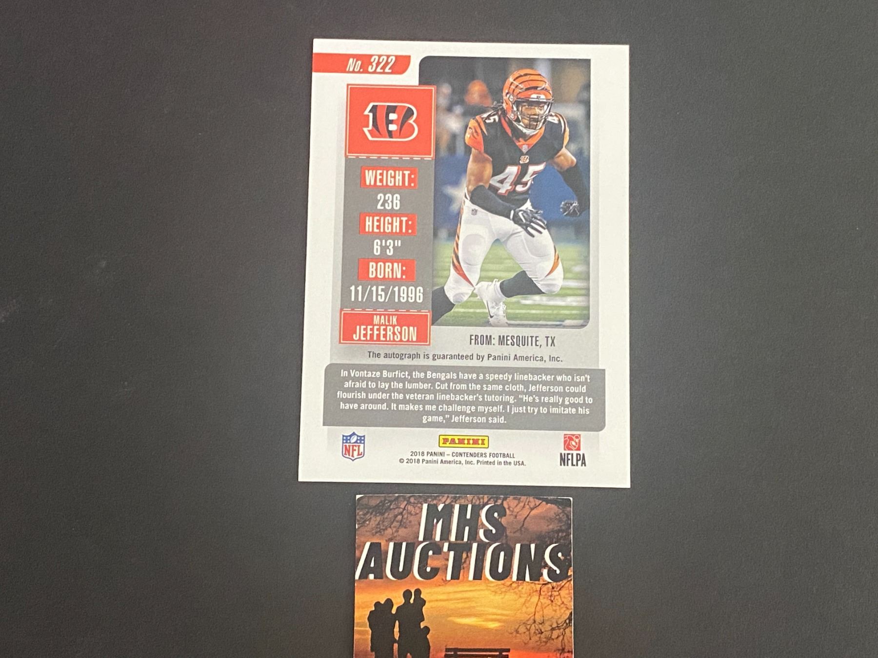 MALIK JEFFERSON 2018 PANINI AUTOGRAPH FOOTBALL CARD
