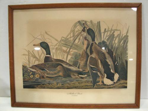 FRAMED MALLARD DUCK AUDUBON PRINT. Depicts a pair of mallard drake and hens. Titled “Mallard Duck/Anas Boschias/Drawn from nature by John J. Audubon/Penn Prints, New York”. 15” x 19” framed.