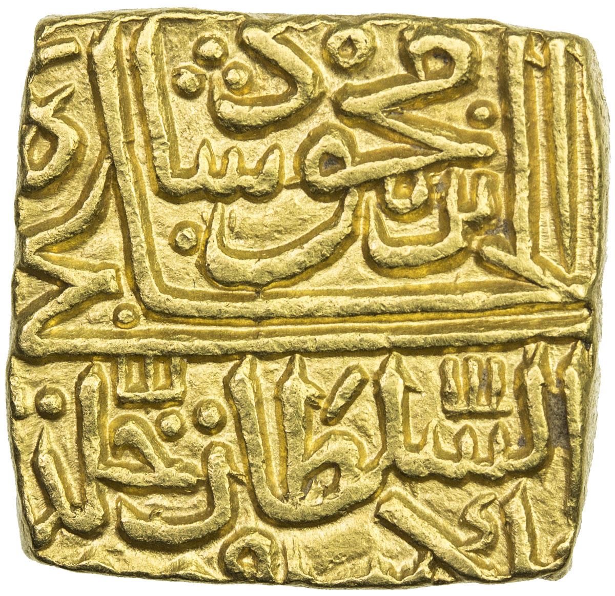 MALWA: Ghiyath Shah, 1469-1500, AV square tanka (10.81g), G-M67, date is almost certainly AH889 (the last digit very clear), 1 small testmark, VF to EF.