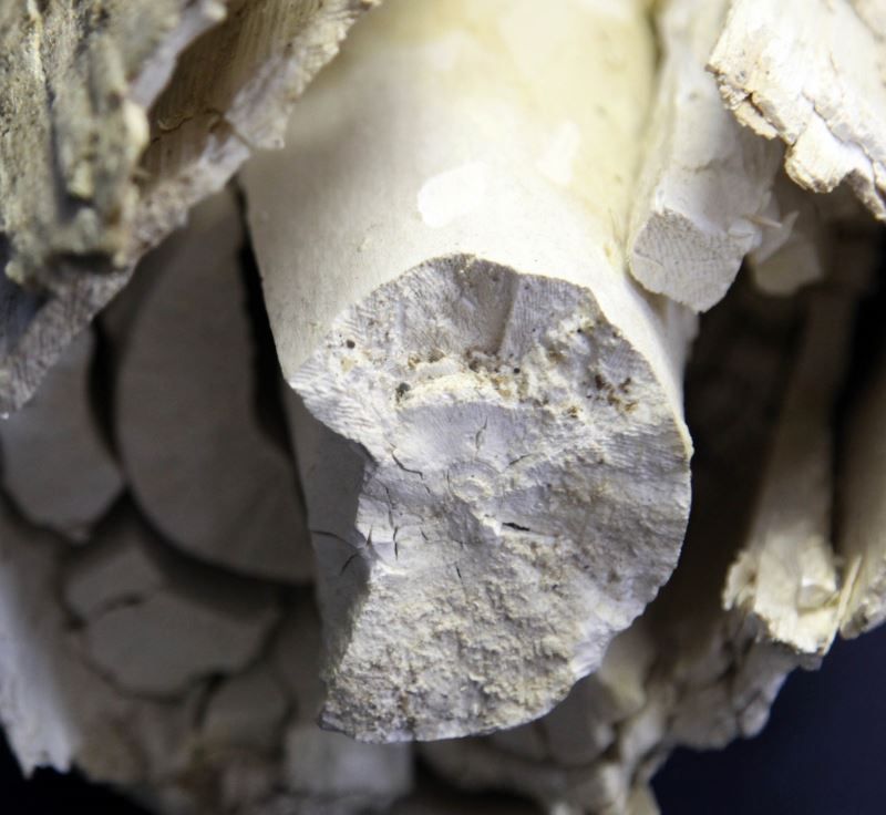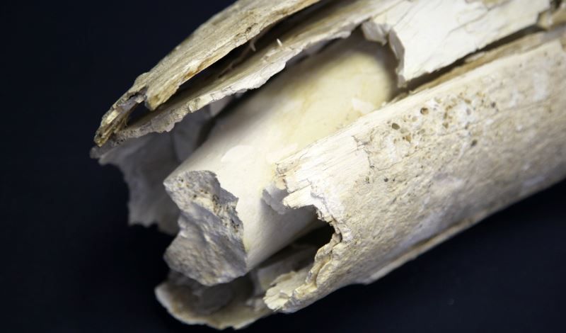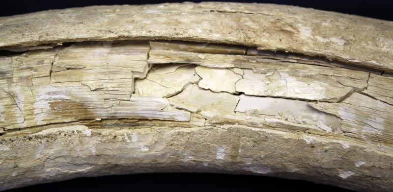 Eurasian mid-Pleistocene (c. 600-370K years ago) Mammoth tusk, probably Steppe Mammoth (Mammuthus trogontherii). Measures 49 inches long and 20 inches around at the widest. Rough white patina; needs restoration. Please obtain a shipping estimate prior to bidding as item is heavy. Weighs over 40 pounds. Overall in good to very good condition.