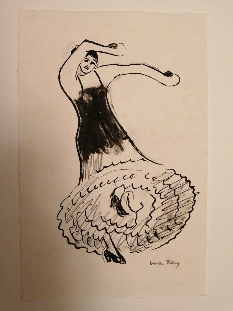 Man Ray was an American visual artist who spent most of his career in Paris. He was a significant contributor to the Dada and Surrealist movements, although his ties to each were informal. A drawing by Man Ray, signed. Size of image: 10.5x6 inches. Mounted and framed and Supplied with coa.