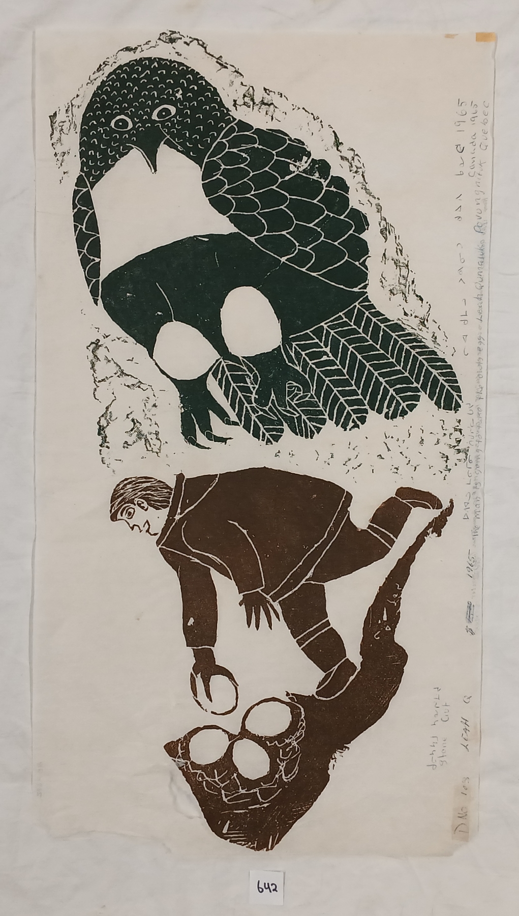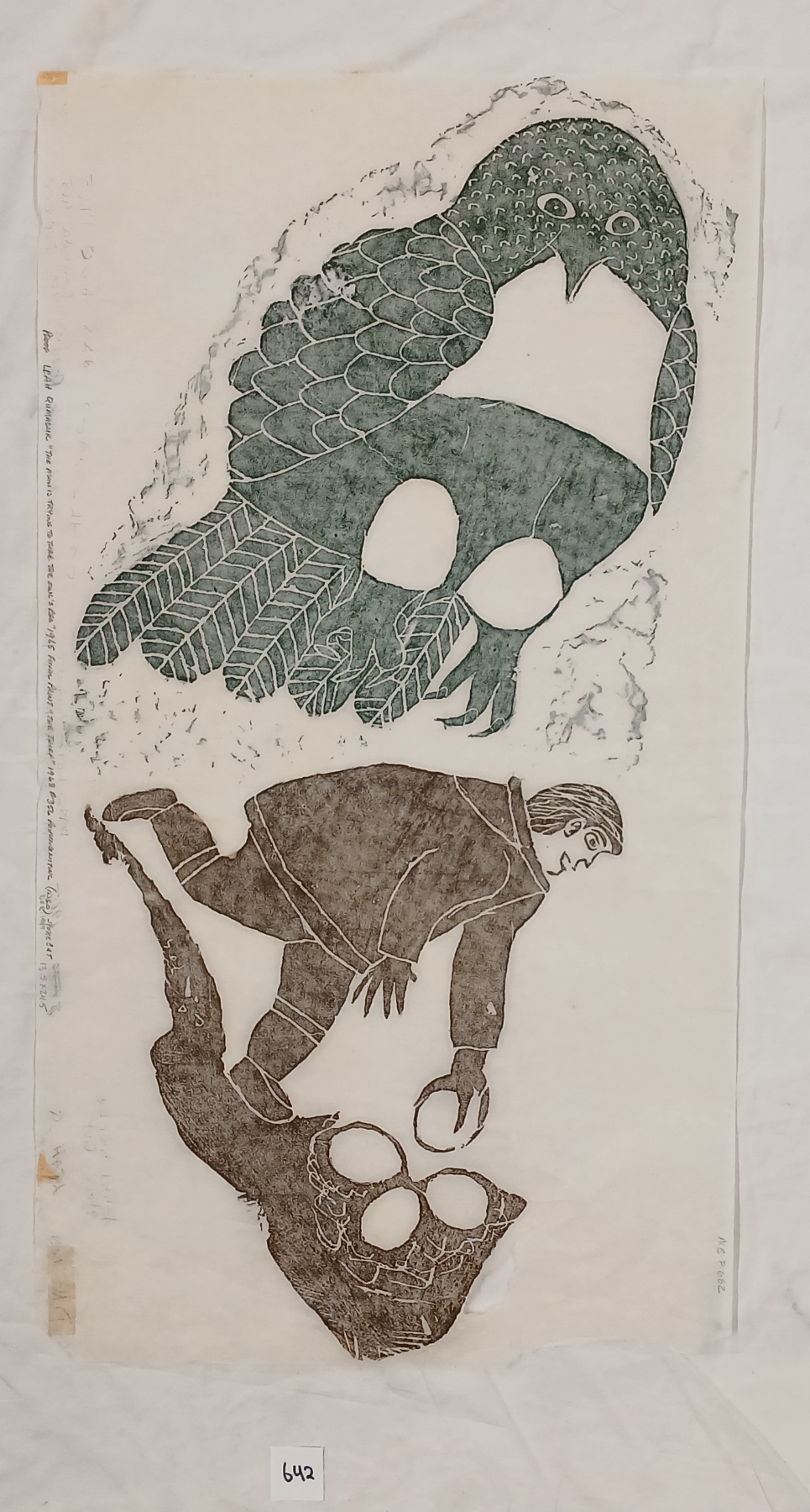 NOTE: 14 X 24IN - ARTIST PROOF - MADE IN POVUNGNITUK - CIRCA 1965 - TORN PAPER