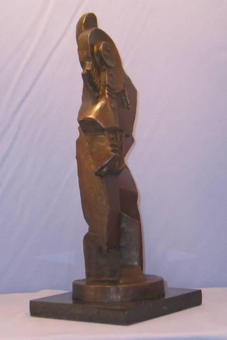 THE SCULPTURE MEASURES 15 1/4 INCH X 4 1/2 INCH X 6 INCH.