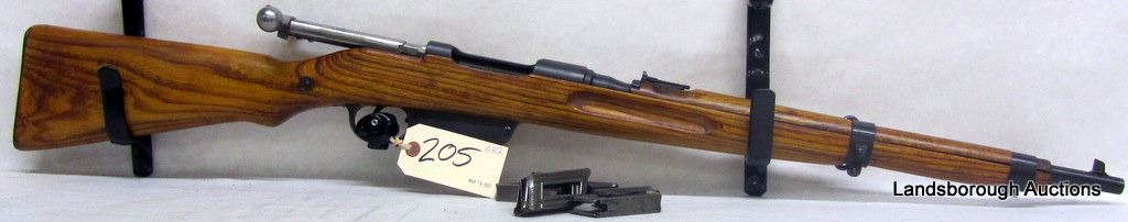 NON RESTRICTED BOLT ACTION 8MM MAUSER 500MM BARREL S/N 35E. WOOD IS GOOD WITH SOME WEAR, BLUING IS GOOD, BORE IS PITTED. COMES WITH 6 STRIPPER CLIPS