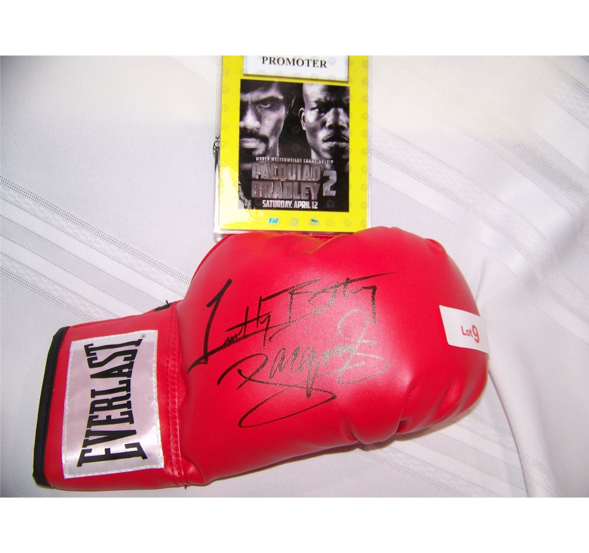 GLOVE IS GUARANTEED TO BE 100% AUTHENTIC AS DESCRIBED & WAS SIGNED IN LAS VEGAS AT THE MGM PRECEEDING THE RECENT FIGHT.