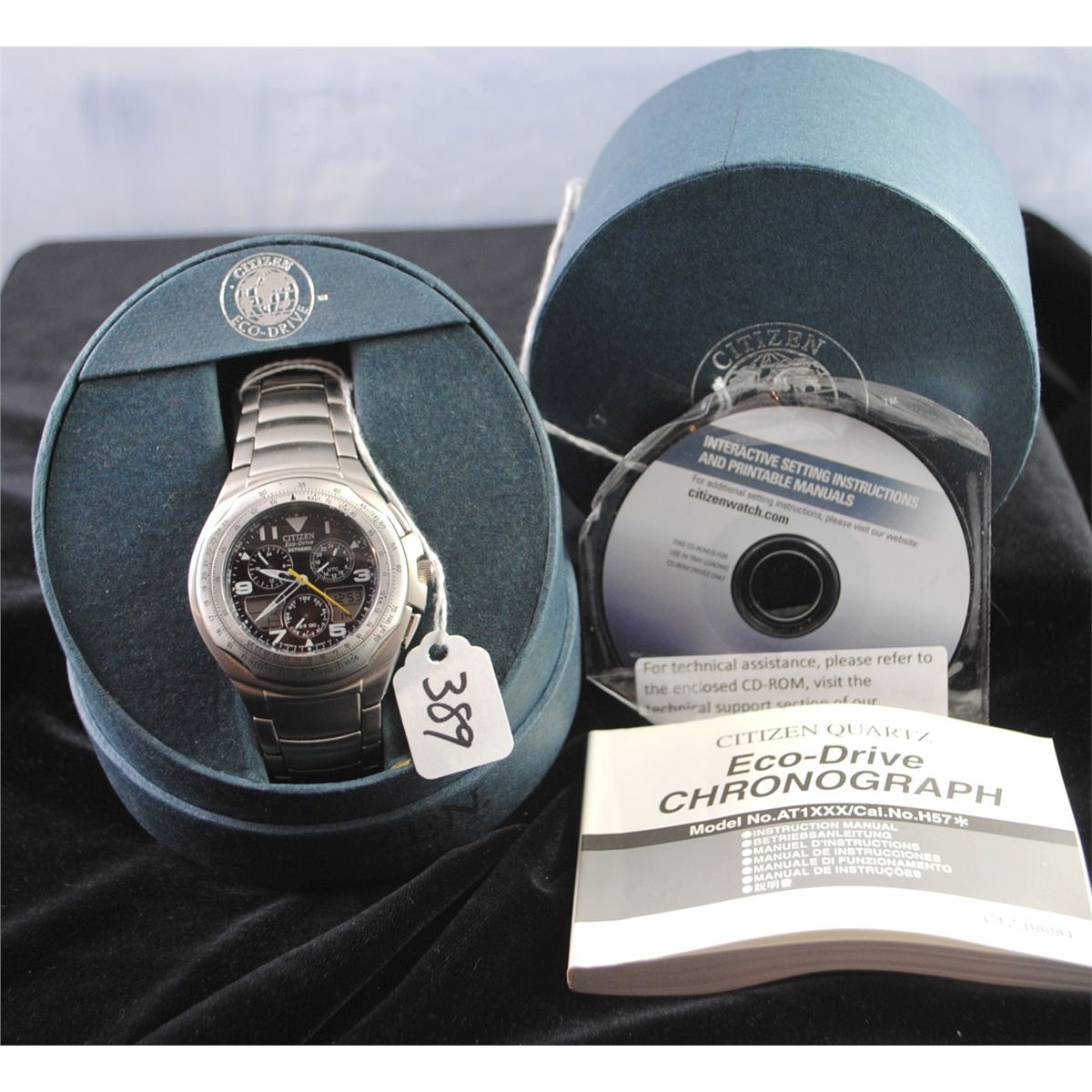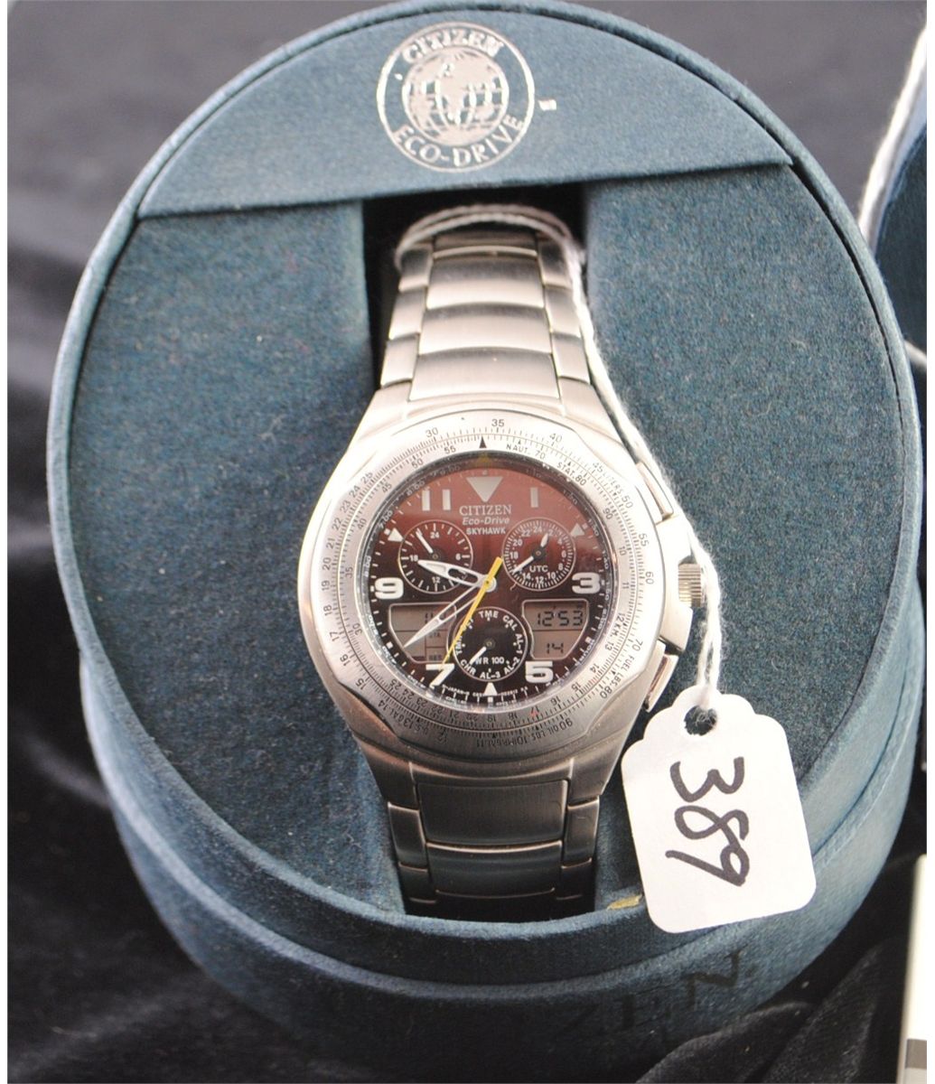 MANS CITIZENS "ECO-DRIVE" SKYHAWK WRISTWATCH WITH ORIGINAL BOX AND PAPERS